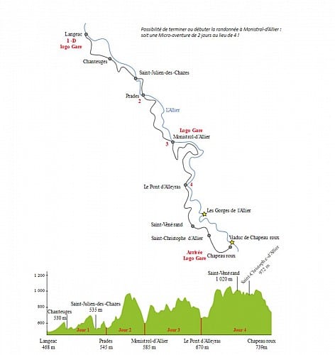 Gîte du Val d'Allier » Les chemins autour du Val d’Allier » Sources et gorges de l’Allier GR470 » tracé du GR470